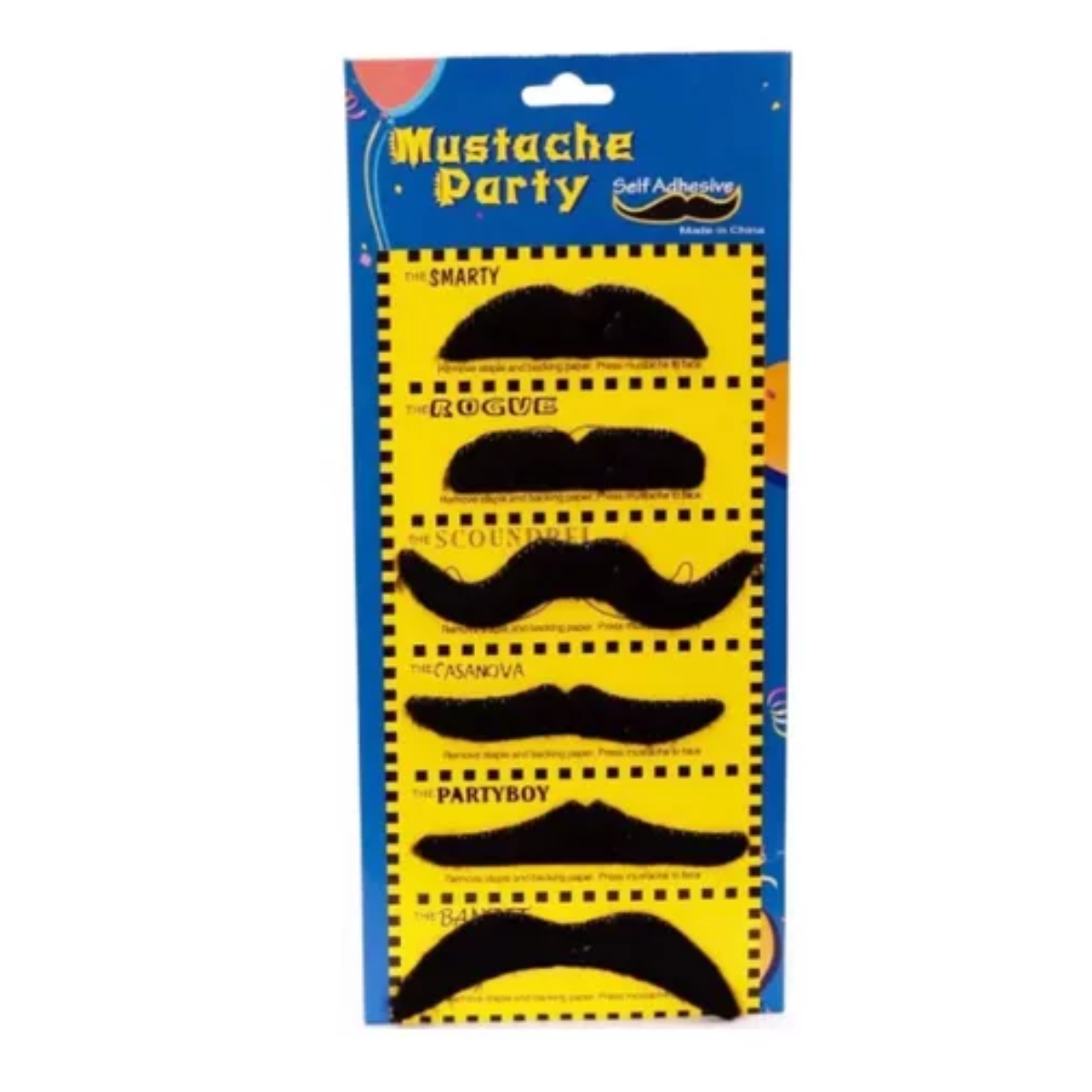 Bigode Postiço Falso Realista Kit c/ 6 em modelos sortidos na cartela